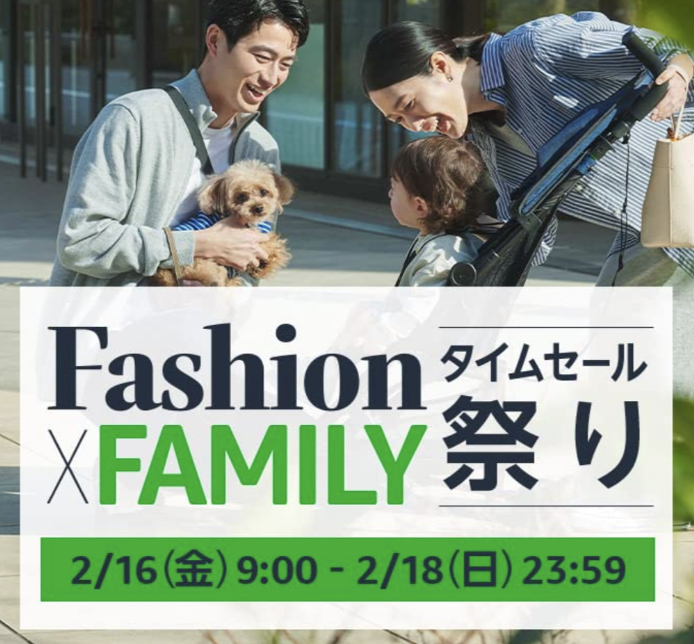 「Amazon ファッション×ファミリータイムセール祭り」が2月16日(金)9時から2月18日(日)まで開催されます。
